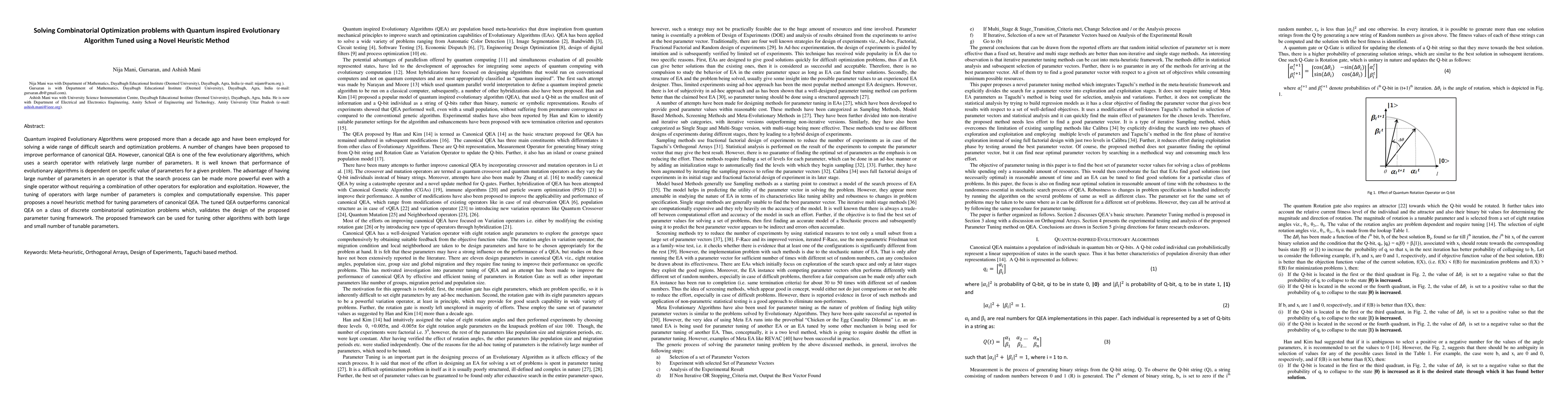 A novel heuristic method is proposed to tune parameters of Quantum Inspired Evolutionary Algorithm (QEA) for solving combinatorial optimization problems, improving its performance on discrete problems.