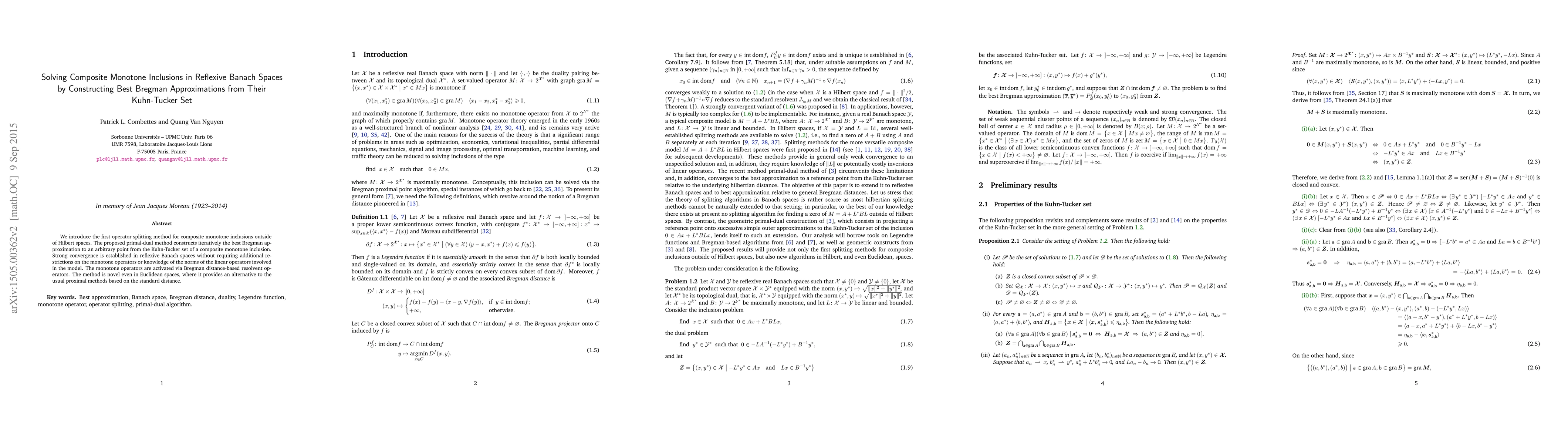 This paper introduces a novel operator splitting method for solving composite monotone inclusions in reflexive Banach spaces, leveraging best Bregman approximations derived from the Kuhn-Tucker set. The method ensures strong convergence without additional restrictions on the monotone operators or knowledge of their norms.