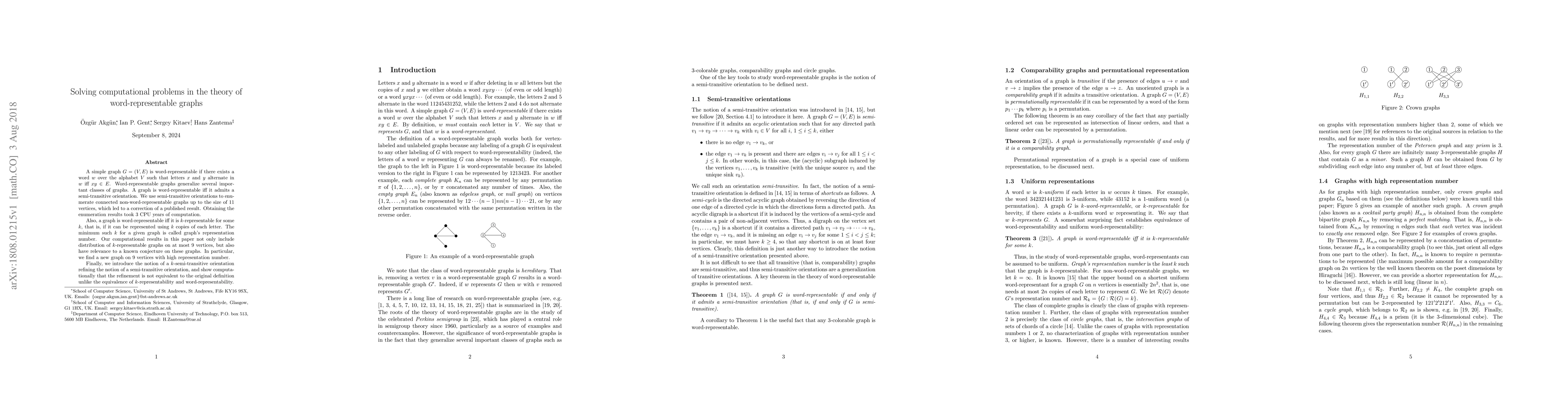 This paper investigates computational methods for determining word-representable graphs, using semi-transitive orientations to enumerate non-word-representable graphs up to 11 vertices and correcting a previous result. It also explores the representation number of $k$-representable graphs, finding a new graph with a high representation number, and introduces $k$-semi-transitive orientations, showing they differ from standard semi-transitive orientations.