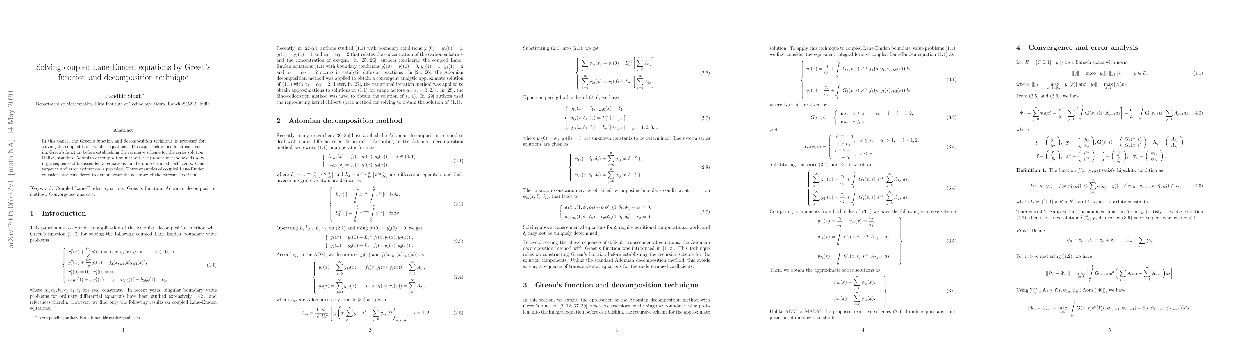 This paper proposes a novel method using Green's function and decomposition technique to solve coupled Lane-Emden equations, avoiding the need for solving transcendental equations. The method's accuracy and efficiency are demonstrated through three examples.