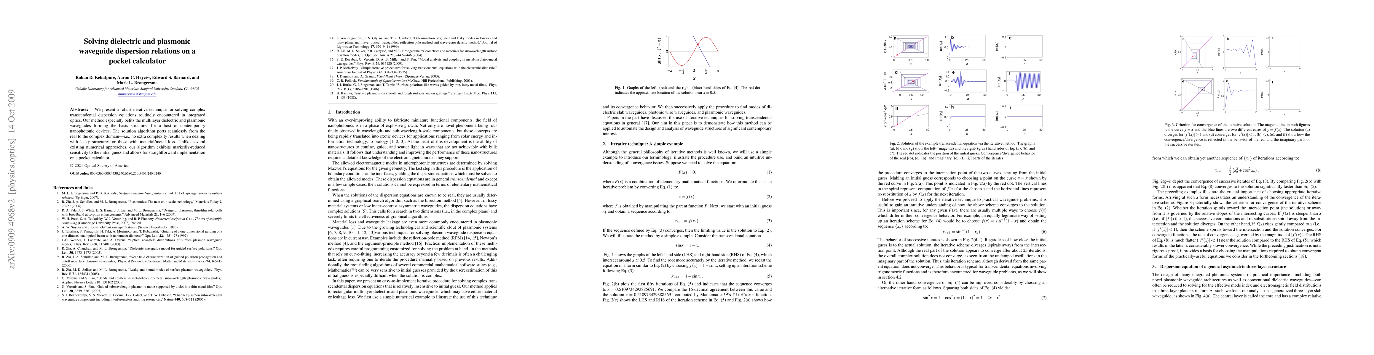 A new method for solving complex dispersion equations in integrated optics is presented, allowing for efficient calculation on a pocket calculator with reduced sensitivity to initial guesses.