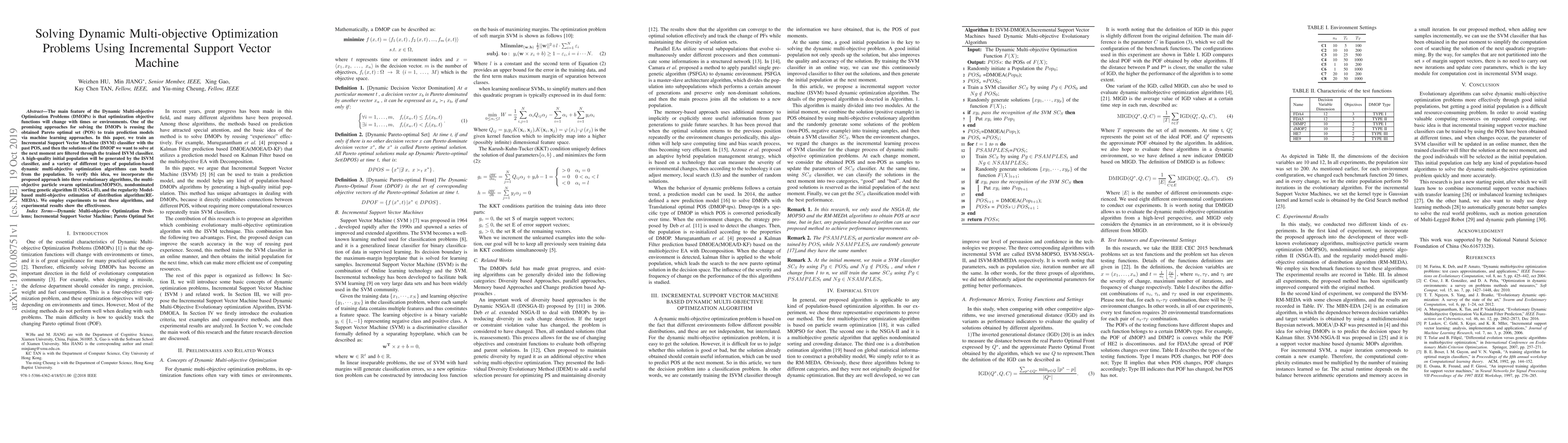 This paper proposes an Incremental Support Vector Machine (ISVM) classifier to generate a high-quality initial population for solving Dynamic Multi-objective Optimization Problems (DMOPs). The approach is integrated into three evolutionary algorithms, demonstrating improved performance through experiments.