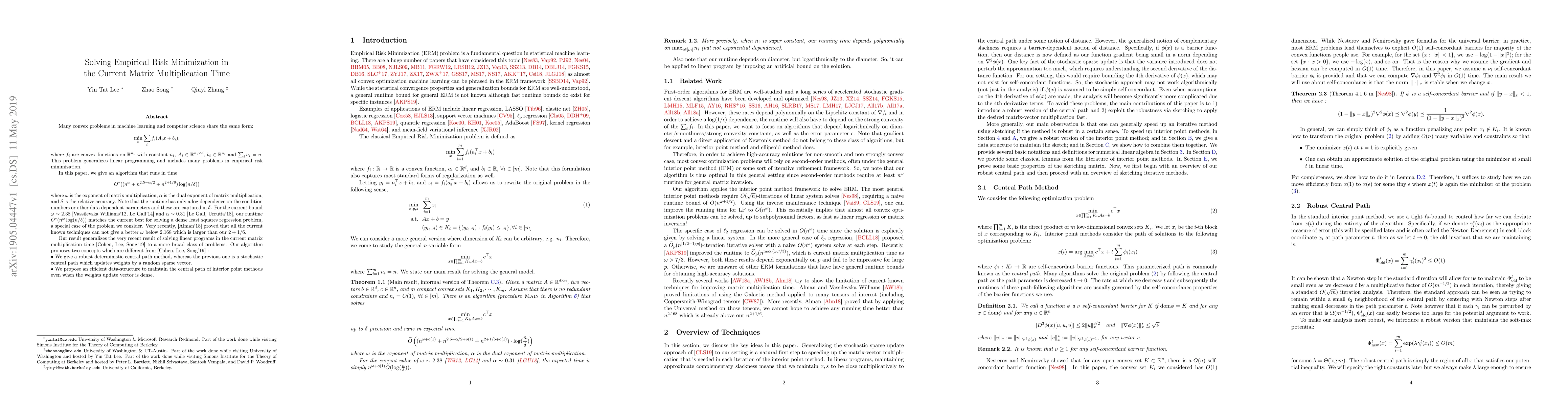 Researchers developed an algorithm that solves a type of machine learning problem in current matrix multiplication time, achieving a runtime bound of O(n^omega log(n/delta)) with a log dependence on condition numbers.