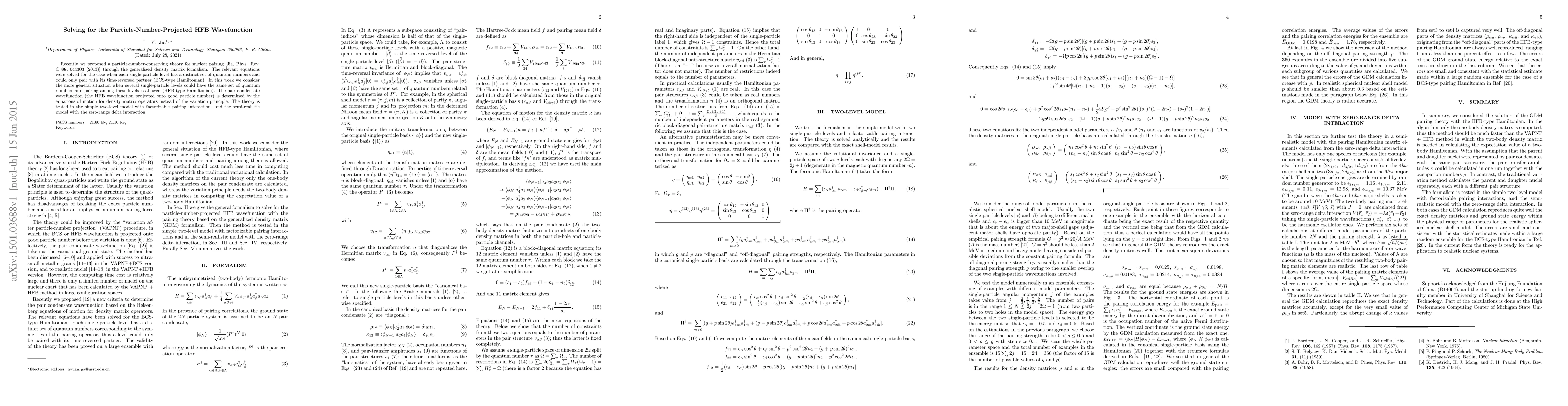 Recently we proposed a particle-number-conserving theory for nuclear pairing [Jia, Phys. Rev. C 88, 044303 (2013)] through the generalized density matrix formalism. The relevant equations were solved for the case when each single-particle level has a distinct set of quantum numbers and could only pair with its time-reversed partner (BCS-type Hamiltonian). In this work we consider the more general situation when several single-particle levels could have the same set of quantum numbers and pairing among these levels is allowed (HFB-type Hamiltonian). The pair condensate wavefunction (the HFB wavefunction projected onto good particle number) is determined by the equations of motion for density matrix operators instead of the variation principle. The theory is tested in the simple two-level model with factorizable pairing interactions and the semi-realistic model with the zero-range delta interaction.
