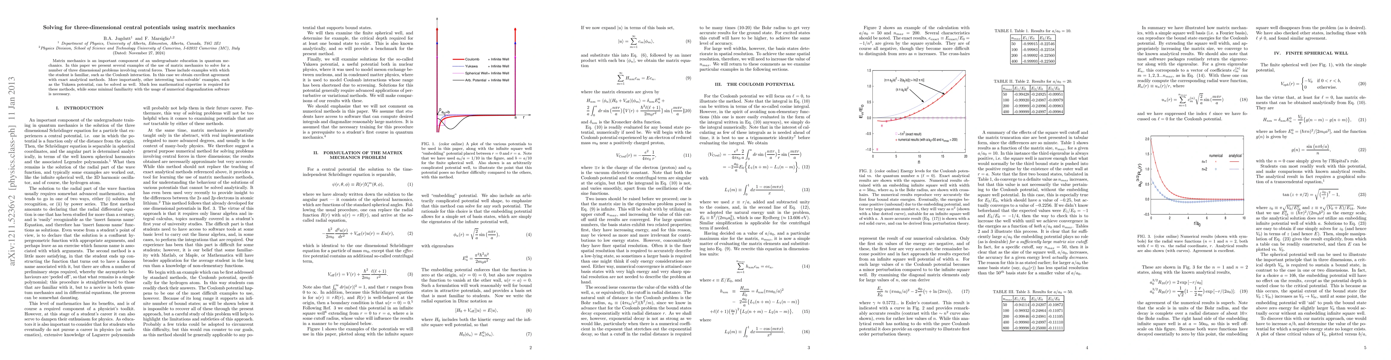 Matrix mechanics is an important component of an undergraduate education in quantum mechanics. In this paper we present several examples of the use of matrix mechanics to solve for a number of three dimensional problems involving central forces. These include examples with which the student is familiar, such as the Coulomb interaction. In this case we obtain excellent agreement with exact analytical methods. More importantly, other interesting `non-solvable' examples, such as the Yukawa potential, can be solved as well. Much less mathematical expertise is required for these methods, while some minimal familiarity with the usage of numerical diagonalization software is necessary.