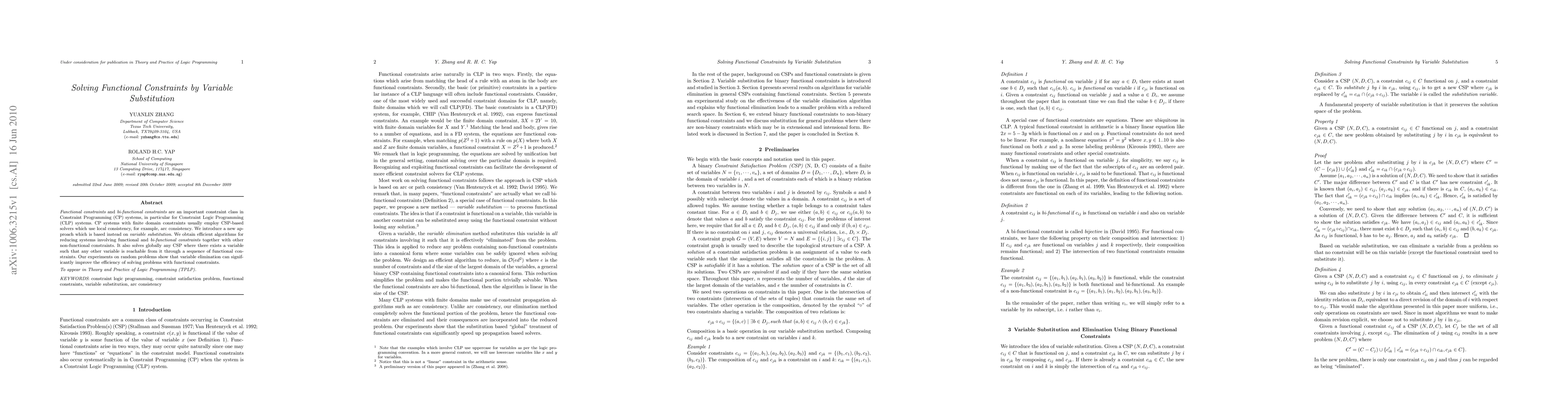 Researchers introduce a new approach to solving functional constraints in Constraint Programming systems using variable substitution, improving efficiency on problems with these constraints.