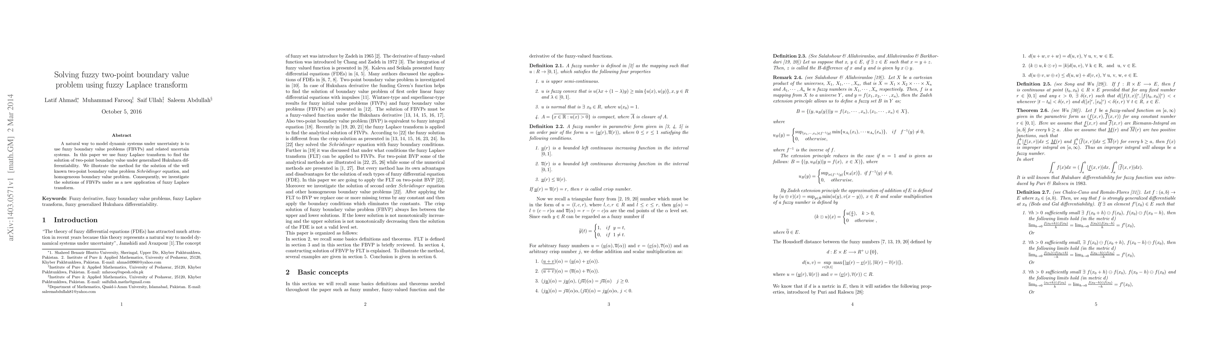 This paper proposes a method using the fuzzy Laplace transform to solve fuzzy two-point boundary value problems (FBVPs) under generalized Hukuhara differentiability. It demonstrates the approach by solving the Schrödinger equation and a homogeneous boundary value problem.