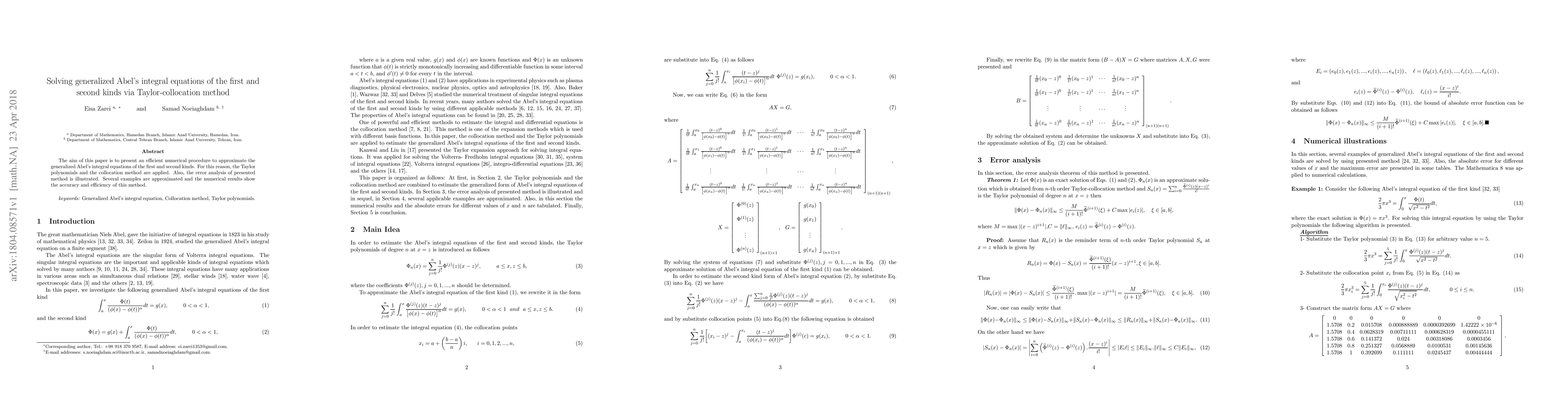 This paper proposes a Taylor-collocation method to numerically solve generalized Abel's integral equations of the first and second kinds, demonstrating its accuracy and efficiency through error analysis and example approximations.