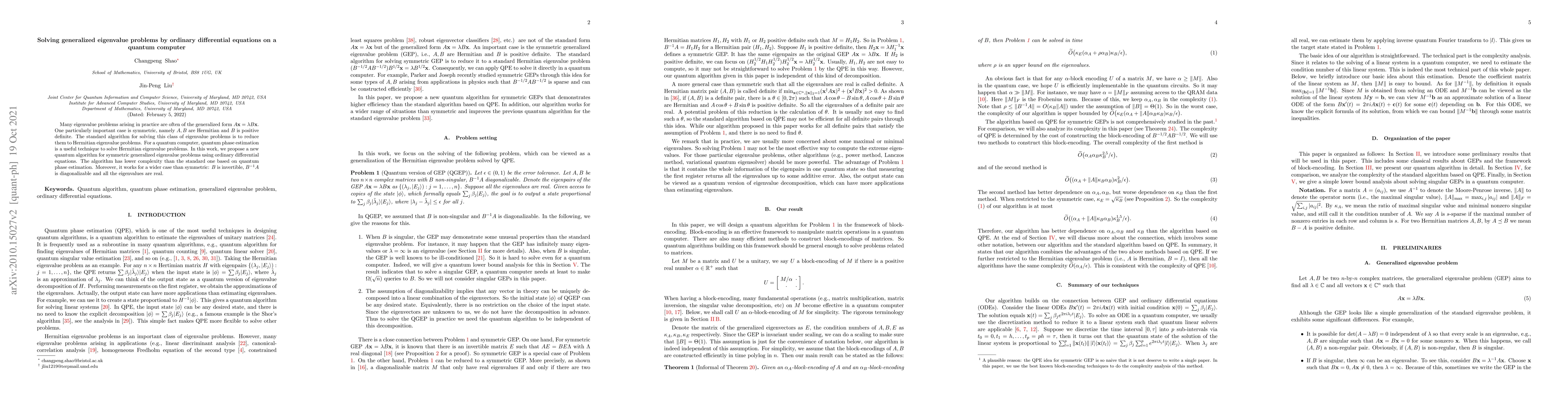 This work presents a novel approach to solving the generalized eigenvalue problem, which has significant implications for quantum computing and related fields.