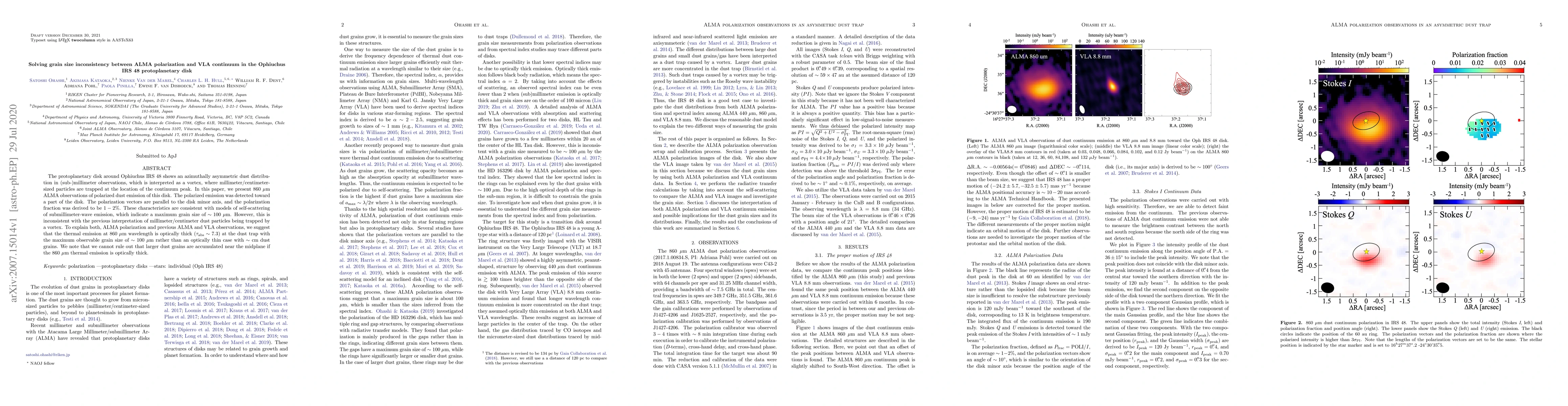 New ALMA observations reveal a vortex in the Ophiuchus protoplanetary disk with polarized dust emission indicating large grain sizes of 100μm, contradicting previous interpretations that assumed smaller grains were trapped by a vortex.
