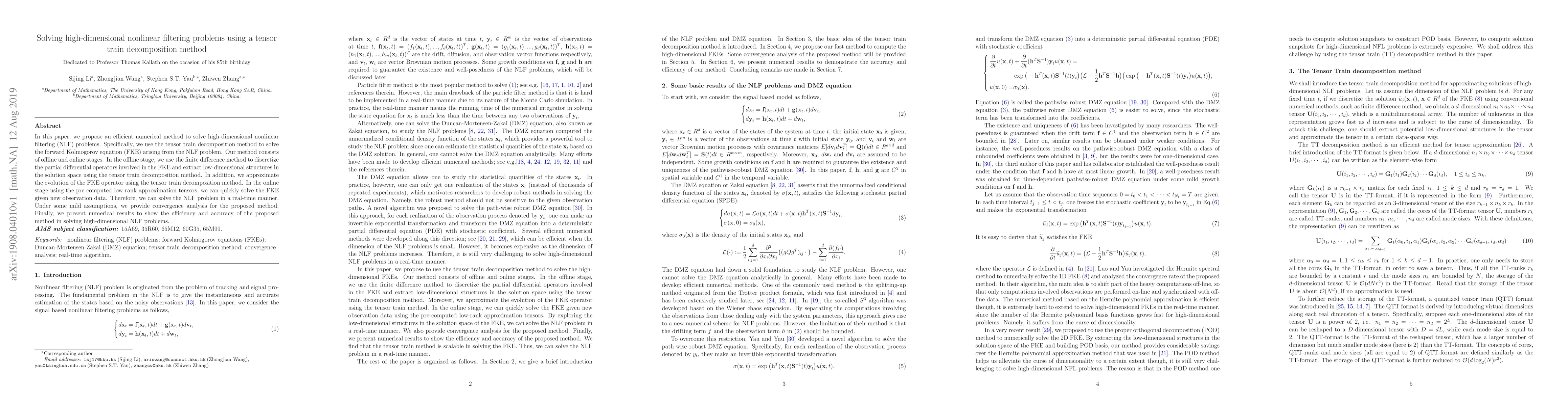 This paper introduces a tensor train decomposition method to efficiently solve high-dimensional nonlinear filtering problems by discretizing the forward Kolmogorov equation in an offline phase and rapidly solving it in an online phase using pre-computed low-rank approximations, demonstrating convergence and real-time applicability.