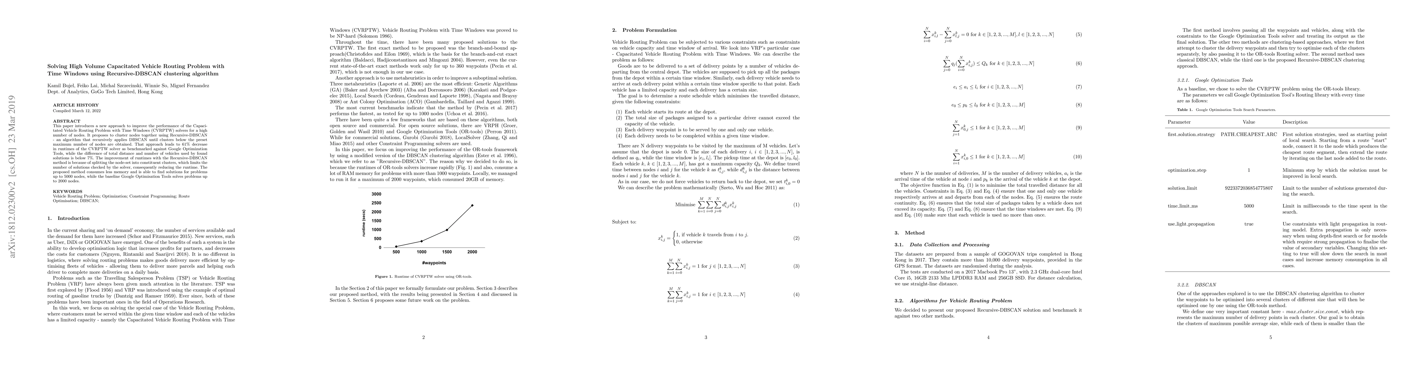 This paper presents a novel Recursive-DBSCAN clustering algorithm to enhance the efficiency of solving the Capacitated Vehicle Routing Problem with Time Windows (CVRPTW) for large node sets, achieving a 61% reduction in runtime with minimal impact on solution quality.