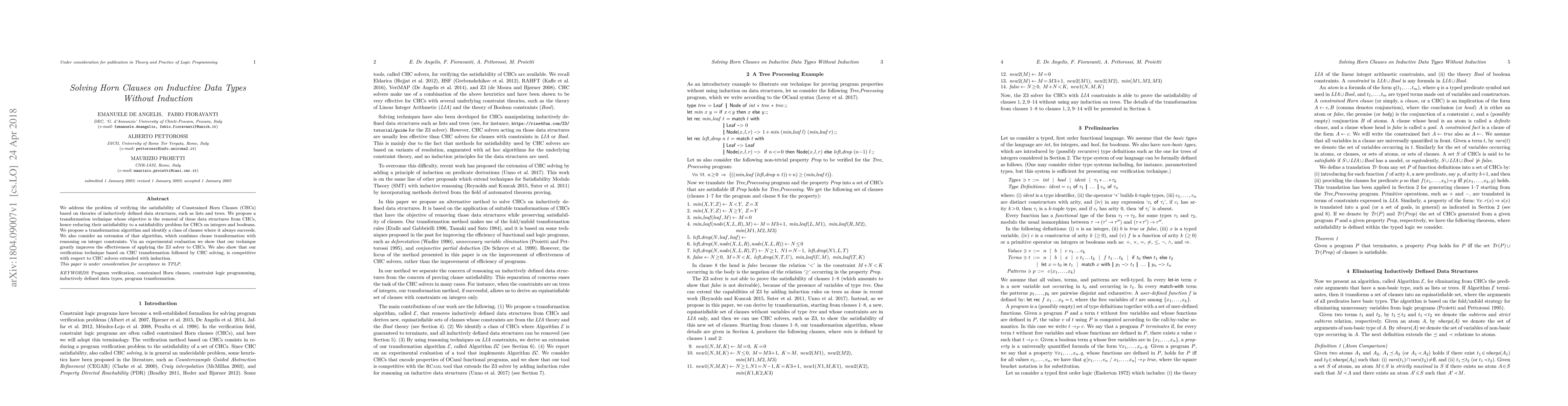 This paper proposes a transformation technique to solve the satisfiability of Constrained Horn Clauses (CHCs) involving inductive data types by eliminating these structures, thus simplifying the problem to CHCs on integers and booleans. The method improves the effectiveness of the Z3 solver and is competitive with extended CHC solvers that use induction.