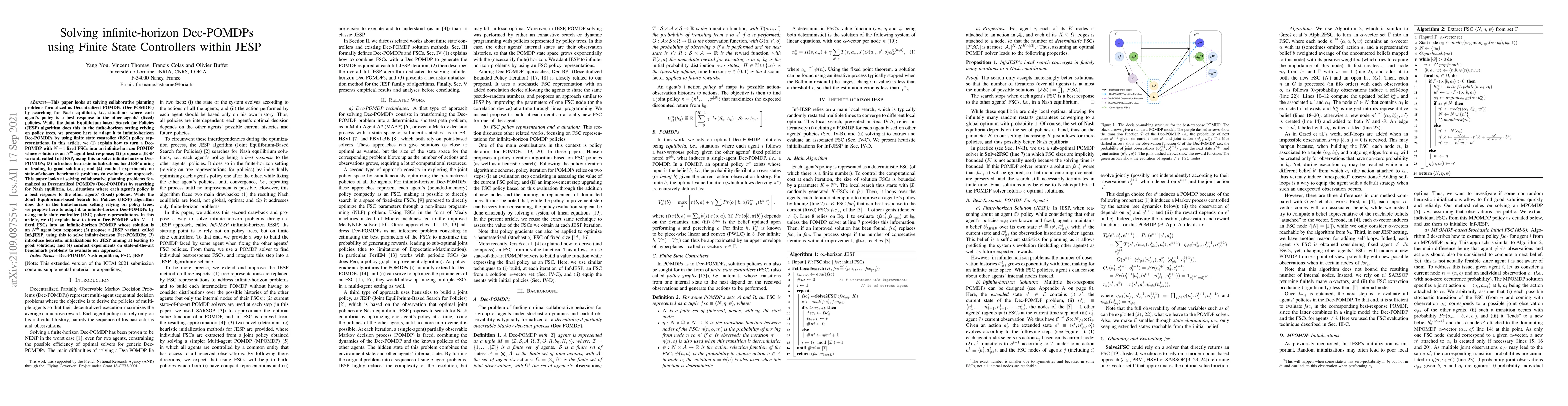 This paper proposes an adaptation of the JESP algorithm to solve infinite-horizon Dec-POMDPs using finite state controllers, introducing a new variant called \infJESP and conducting experiments on benchmark problems to evaluate its effectiveness. The method includes transforming Dec-POMDPs into infinite-horizon POMDPs and utilizing heuristic initializations for better results.