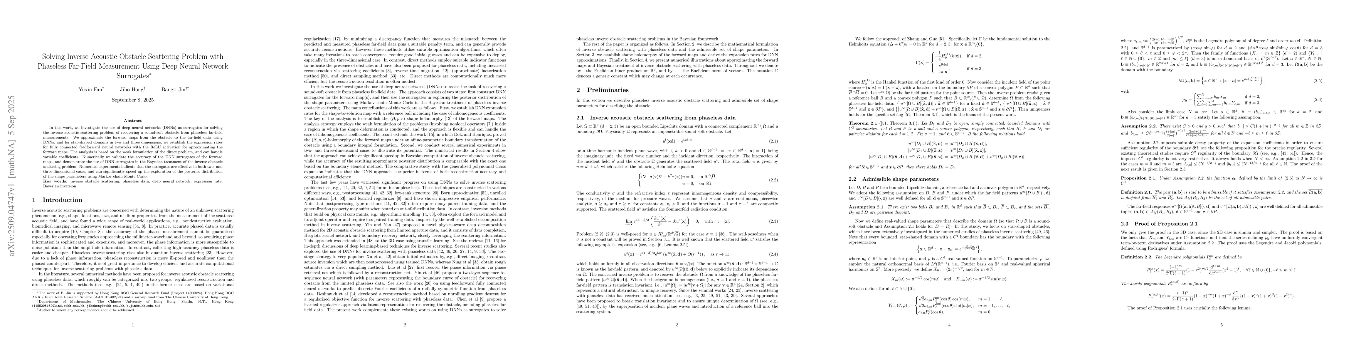 In this work, we investigate the use of deep neural networks (DNNs) as surrogates for solving the inverse acoustic scattering problem of recovering a sound-soft obstacle from phaseless far-field measurements. We approximate the forward maps from the obstacle to the far-field data using DNNs, and for star-shaped domains in two and three dimensions, we establish the expression rates for fully connected feedforward neural networks with the ReLU activation for approximating the forward maps. The analysis is based on the weak formulation of the direct problem, and can handle variable coefficients. Numerically we validate the accuracy of the DNN surrogates of the forward maps, and demonstrate the use of DNN surrogates in the Bayesian treatment of the inverse obstacle scattering problem. Numerical experiments indicate that the surrogates are effective in both two- and three-dimensional cases, and can significantly speed up the exploration of the posterior distribution of the shape parameters using Markov chain Monte Carlo.
