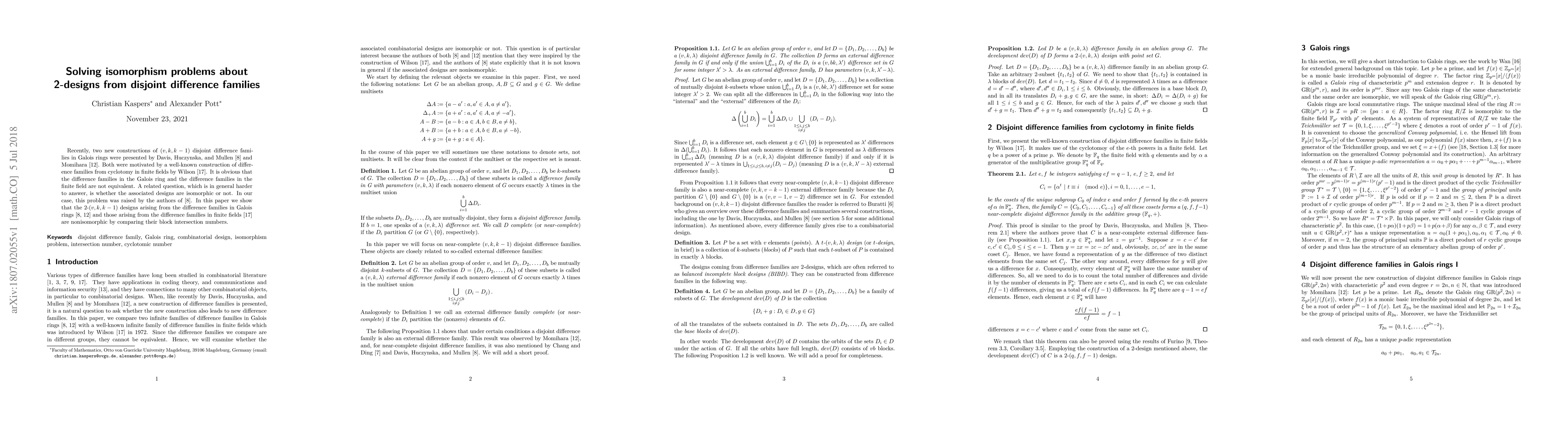 This paper investigates the isomorphism problem between 2-designs derived from $(v,k,k-1)$ disjoint difference families in Galois rings and those in finite fields. It concludes that the designs are nonisomorphic by analyzing their block intersection numbers, resolving a question posed by Davis, Huczynska, and Mullen.