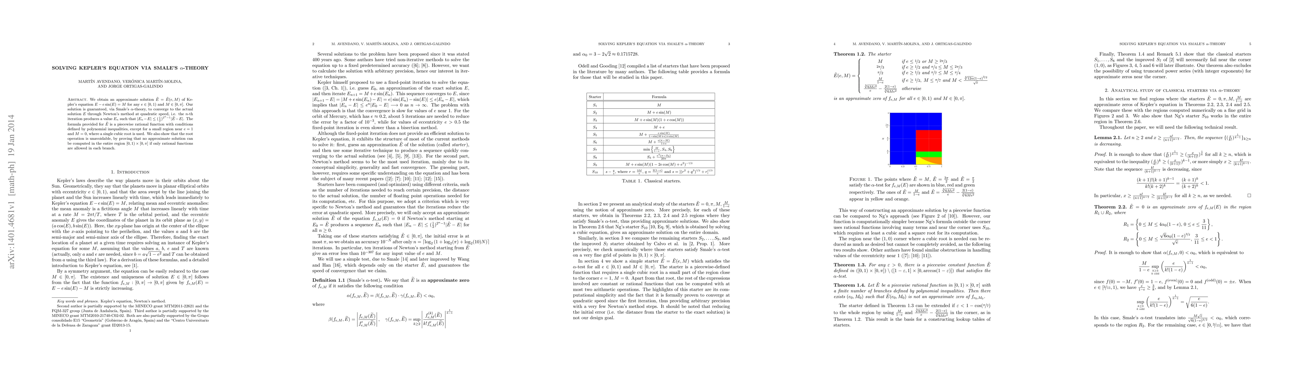 The paper applies Smale's α-theory to Kepler's equation, providing an approximate solution $\tilde{E}=\tilde{E}(e,M)$ for $e\in[0,1)$ and $M\in[0,\pi]$ with guaranteed convergence via Newton's method at quadratic speed.