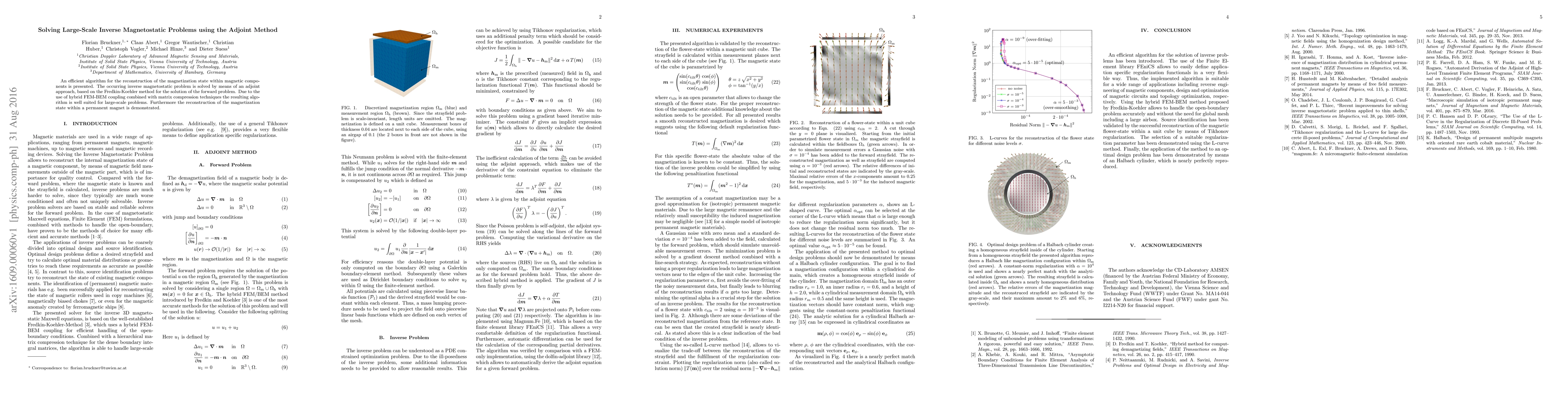 An efficient algorithm for the reconstruction of the magnetization state within magnetic components is presented. The occurring inverse magnetostatic problem is solved by means of an adjoint approach, based on the Fredkin-Koehler method for the solution of the forward problem. Due to the use of hybrid FEM-BEM coupling combined with matrix compression techniques the resulting algorithm is well suited for large-scale problems. Furthermore the reconstruction of the magnetization state within a permanent magnet is demonstrated.