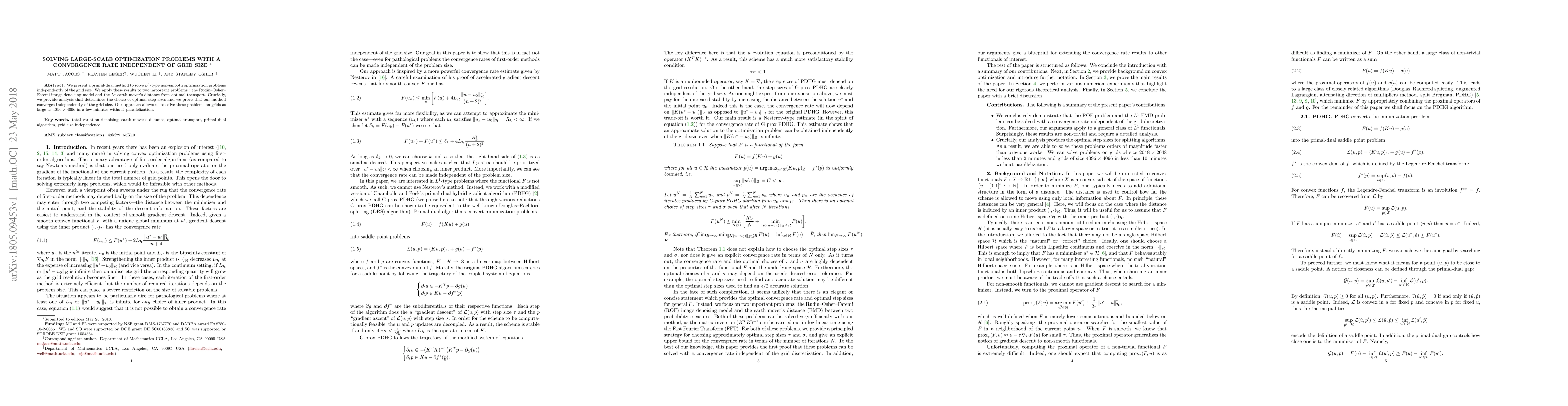 We present a primal-dual method to solve L1-type non-smooth optimization problems independently of the grid size. We apply these results to two important problems : the Rudin-Osher-Fatemi image denoising model and the L1 earth mover's distance from optimal transport. Crucially, we provide analysis that determines the choice of optimal step sizes and we prove that our method converges independently of the grid size. Our approach allows us to solve these problems on grids as large as 4096 by 4096 in a few minutes without parallelization.