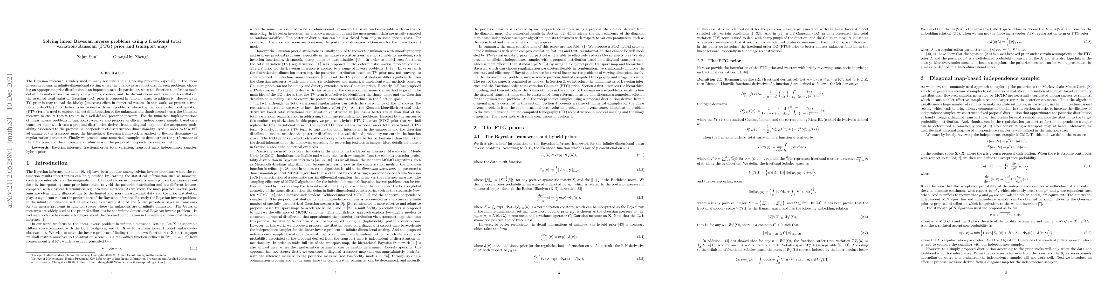 This paper proposes a fractional total variation-Gaussian (FTG) prior to solve linear Bayesian inverse problems with detailed functions, addressing the blocky effect of traditional total variation-Gaussian (TG) priors. It introduces an efficient independence sampler based on a transport map for numerical implementation, demonstrating improved performance through numerical examples.