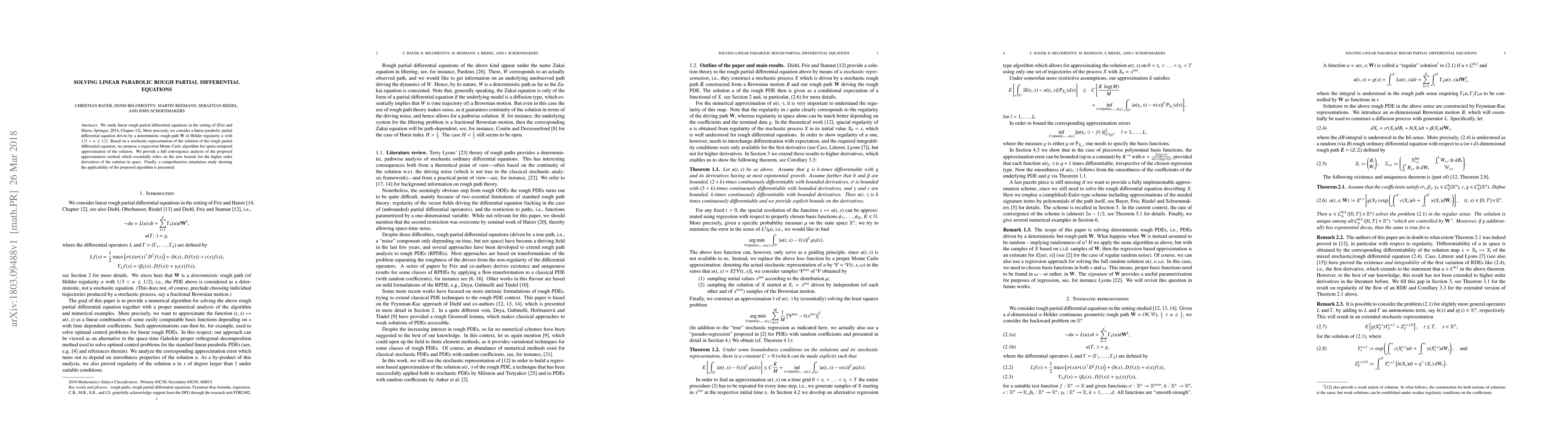 This paper explores linear parabolic partial differential equations driven by deterministic rough paths with H\"older regularity between 1/3 and 1/2. It proposes a regression Monte Carlo algorithm for spatio-temporal approximation, provides a convergence analysis, and demonstrates the algorithm's effectiveness through simulations.