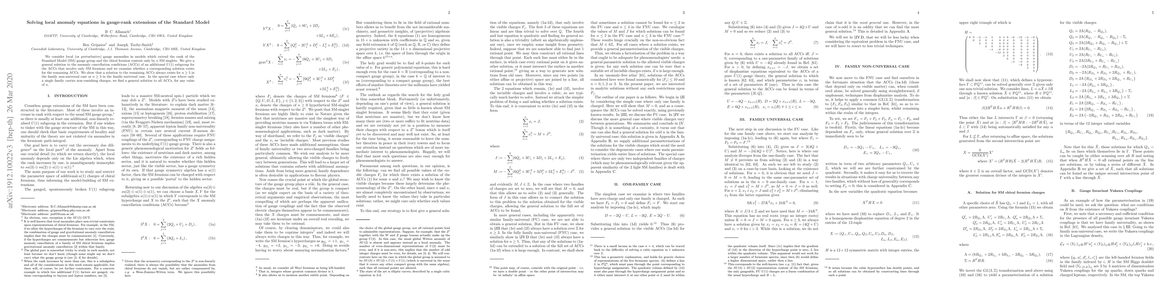 This paper provides a general solution for anomaly cancellation conditions in gauge-rank extensions of the Standard Model by adding $n$ singlet fermions, showing that solutions always exist for $n \geq 5$ in non-universal cases or $n \geq 3$ in universal cases, with a complete solution for a single family carrying non-zero charges.