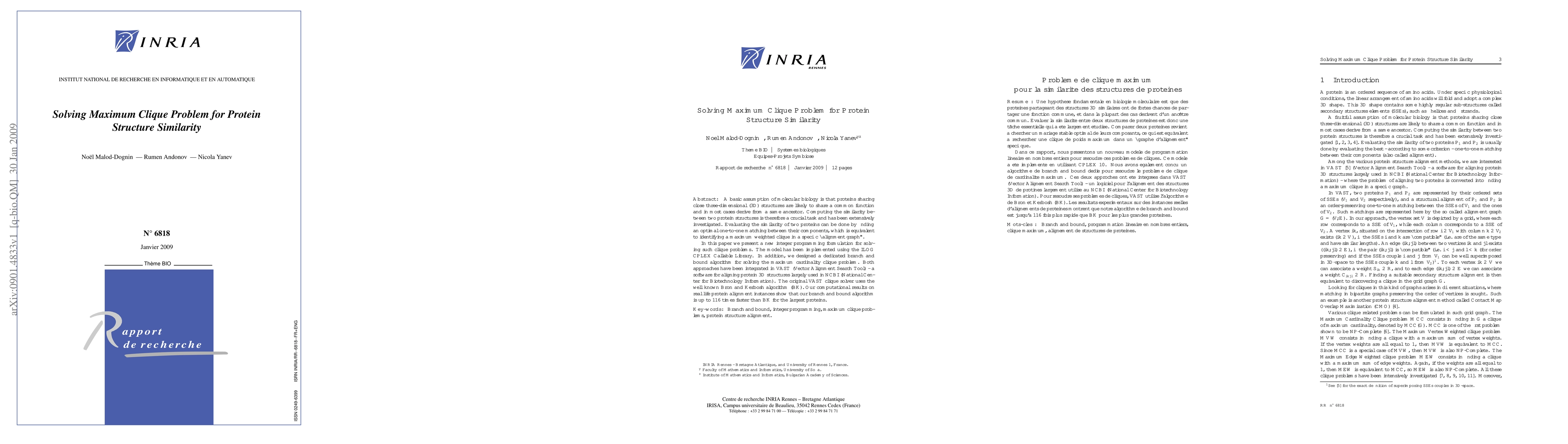 This paper introduces a new integer programming formulation and a dedicated branch and bound algorithm for solving the maximum clique problem in protein structure similarity, significantly outperforming the existing Bron and Kerbosch algorithm in computational speed. The new methods are integrated into VAST, showing up to 116 times faster performance for large proteins.