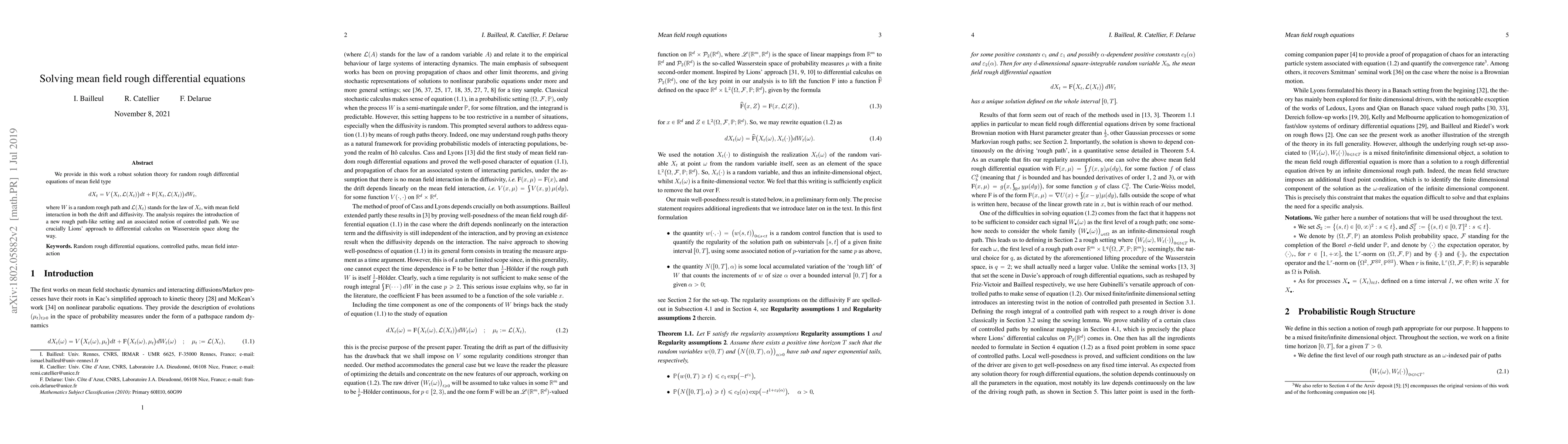 Researchers provide a solution theory for solving mean field rough differential equations with random interaction, using a new rough path-like setting and Lions' approach to differential calculus on Wasserstein space.