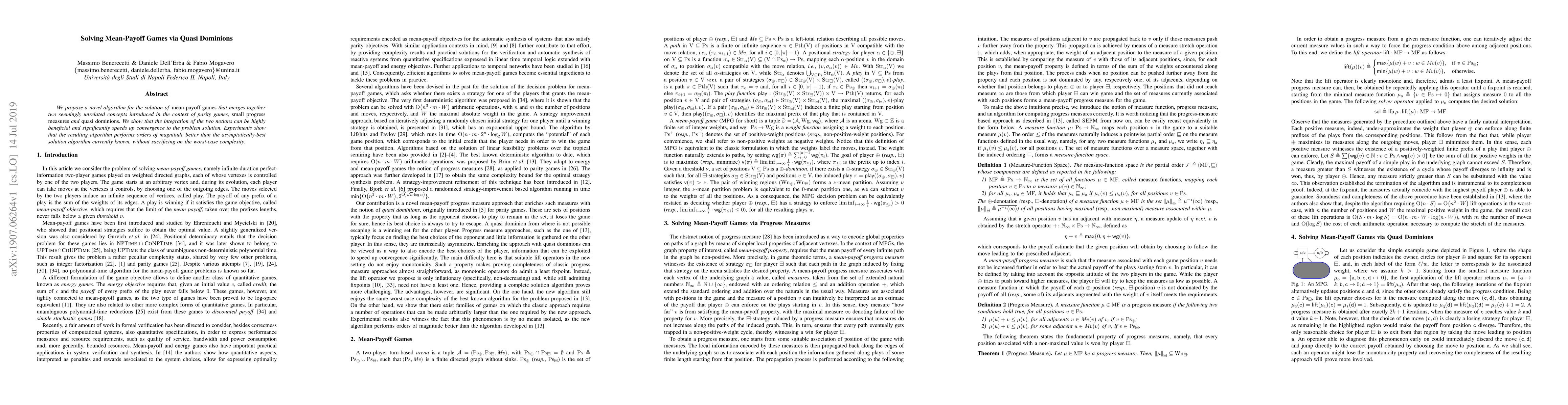 This paper introduces a new algorithm for solving mean-payoff games by combining small progress measures and quasi dominions, significantly speeding up convergence compared to existing methods. Experimental results demonstrate substantial performance improvements without compromising worst-case complexity.