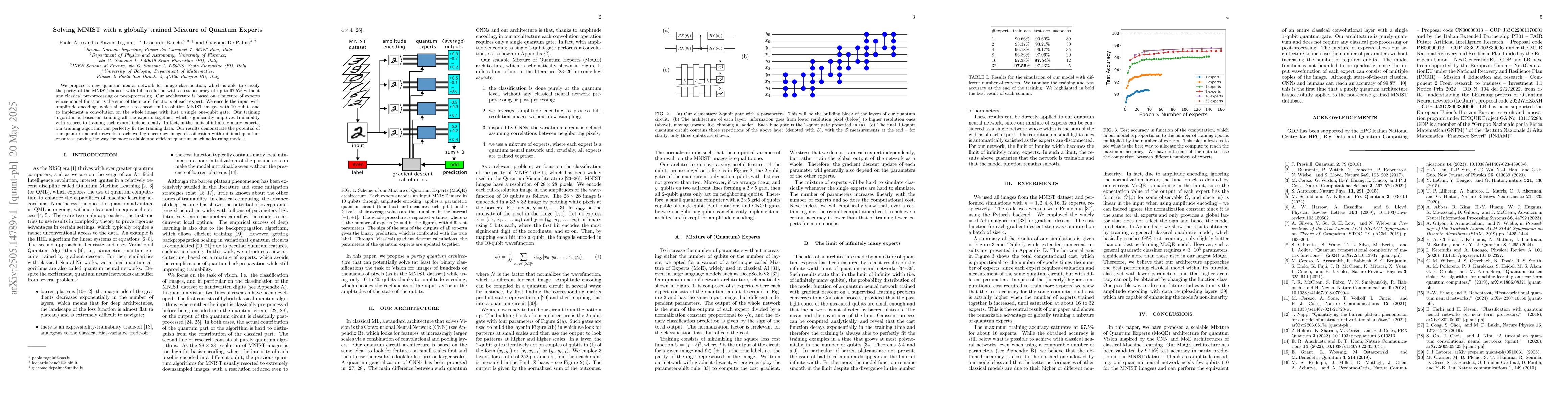A novel quantum neural network architecture based on a mixture of experts, utilizing amplitude encoding and a unique training algorithm for improved trainability.