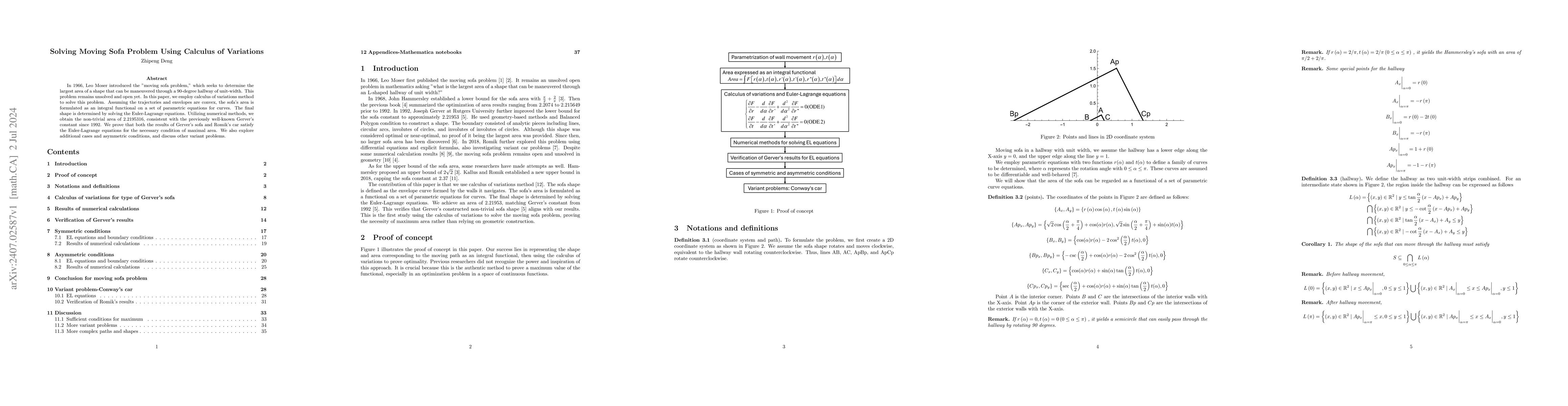 This work is novel because it uses a new approach to the unsolved moving sofa problem using calculus of variations