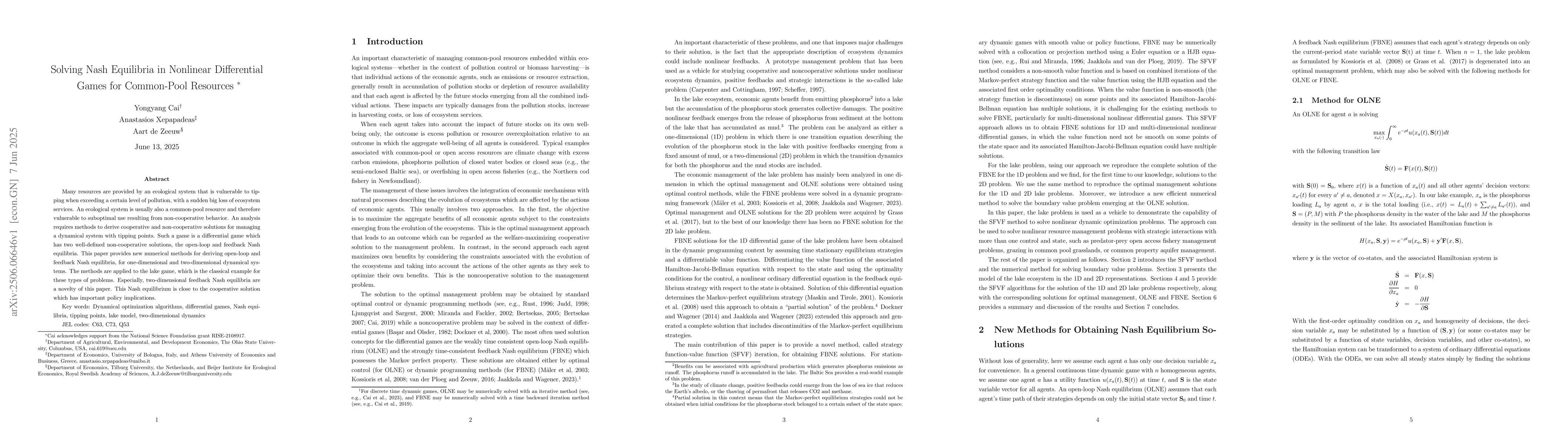 New methods for solving Nash equilibria in nonlinear differential games for common-pool resources have been developed, providing insights into managing systems at risk of tipping points.