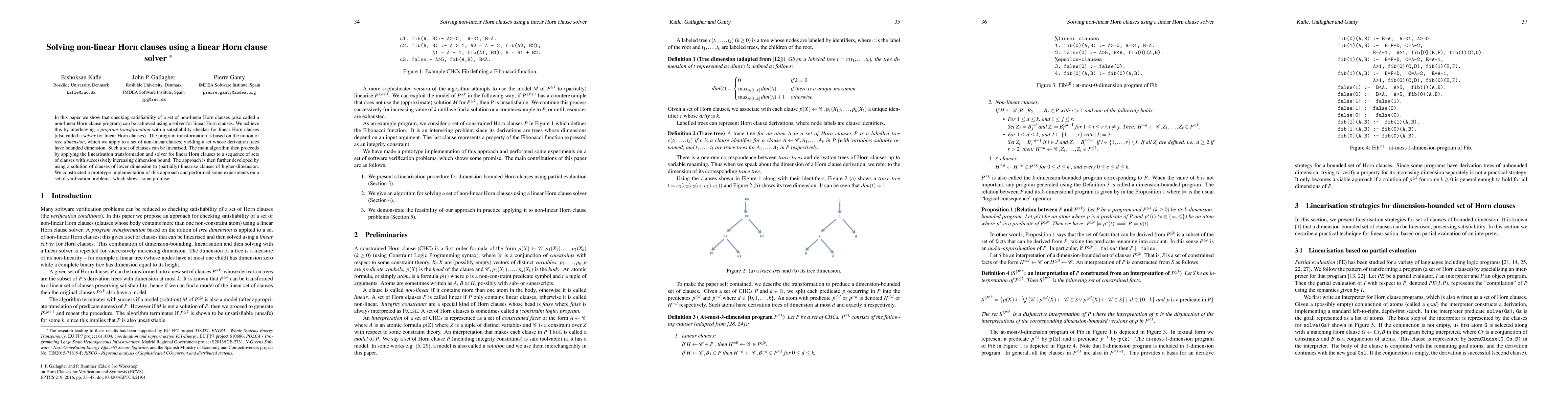This paper presents a method to solve non-linear Horn clauses by transforming them into linear Horn clauses using a program transformation based on tree dimension. An experimental prototype implementation shows promising results in verifying problems.