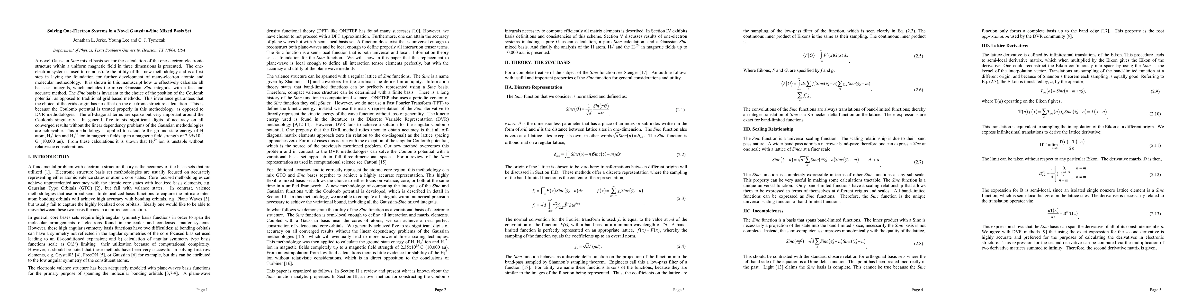A novel Gaussian-Sinc mixed basis set for the calculation of the one-electron electronic structure within a uniform magnetic field in three dimensions is presented. The one-electron system is used to demonstrate the utility of this new methodology and is a first step in laying the foundation for further development of many-electron atomic and molecular methodology. It is shown in this manuscript how to effectively calculate all basis set integrals, which includes the mixed Gaussian-Sinc integrals, with a fast and accurate method. The Sinc basis is invariant to the choice of the position of the Coulomb potential, as opposed to traditional grid based methods. This invariance guarantees that the choice of the grids origin has no effect on the electronic structure calculation. This is because the Coulomb potential is treated properly in this methodology, as opposed to DVR methodologies. The off-diagonal terms are sparse but very important around the Coulomb singularity. In general, five to six significant digits of accuracy on all converged results without the linear dependency problems of the Gaussian methodologies are achievable. This methodology is applied to calculate the ground state energy of H atom, $H_2^{+}$ ion and $H_3^{2+}$ ion in magnetic fields up to a magnetic field strength of 2.35x$10^13$ G (10,000 au). From these calculations it is shown that $H_3^{2+}$ ion is unstable without relativistic considerations.
