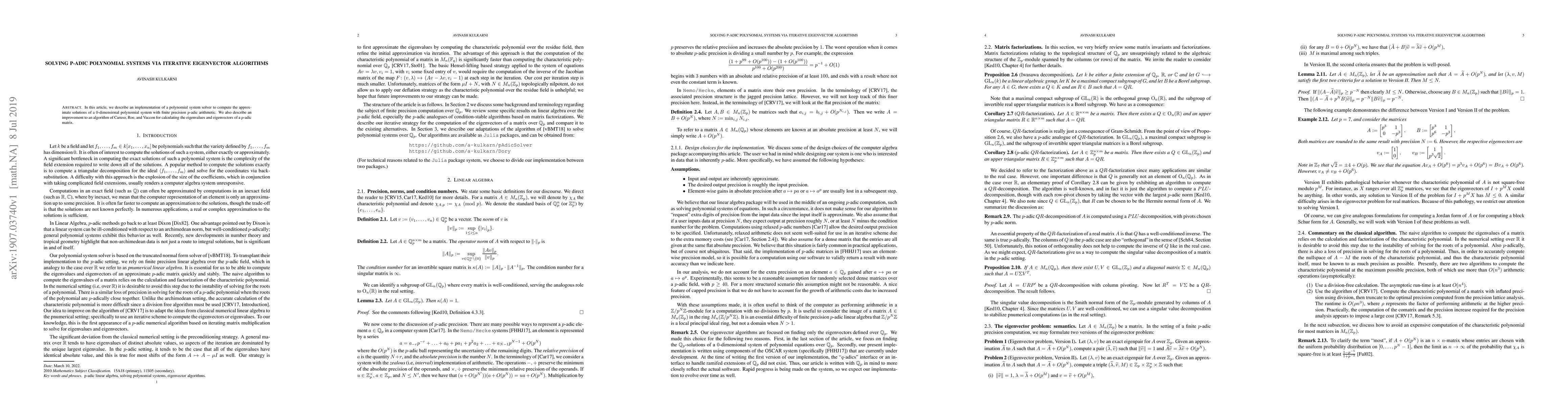 In this article, we describe an implementation of a polynomial system solver to compute the approximate solutions of a 0-dimensional polynomial system with finite precision p-adic arithmetic. We also describe an improvement to an algorithm of Caruso, Roe, and Vaccon for calculating the eigenvalues and eigenvectors of a p-adic matrix.