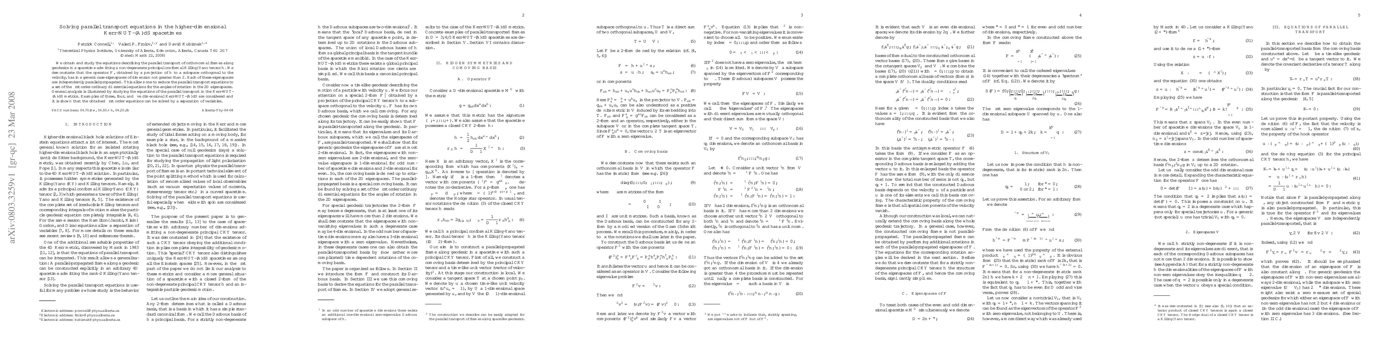 This paper investigates the parallel transport of orthonormal frames in higher-dimensional Kerr-NUT-(A)dS spacetimes, demonstrating that the operator F derived from a principal conformal Killing-Yano tensor reduces the transport equations to first-order ODEs. Solutions are obtained via separation of variables for three, four, and five-dimensional cases.