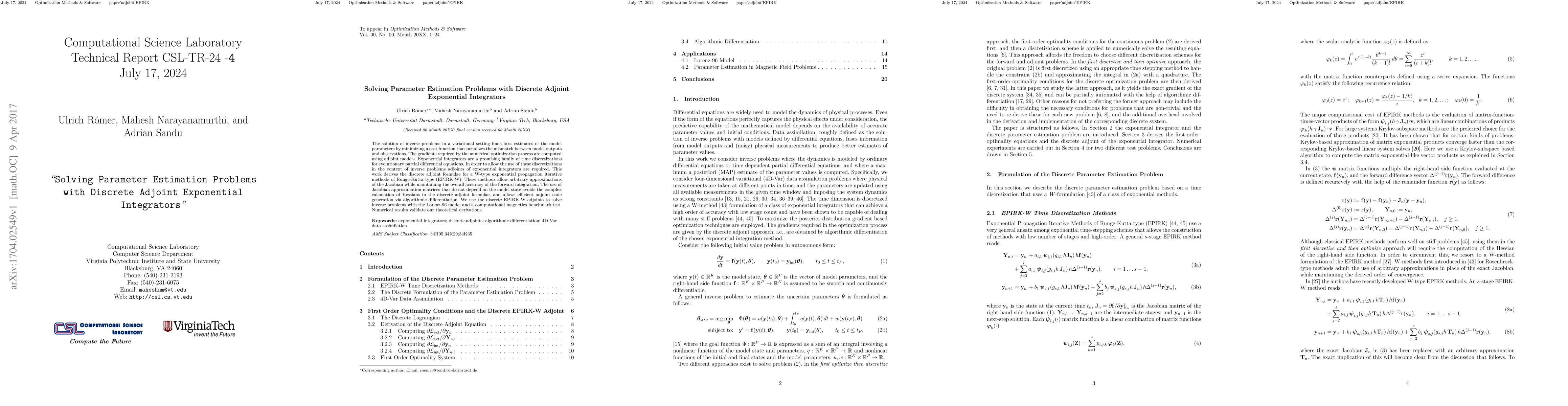 A new method for solving parameter estimation problems in inverse problems uses discrete adjoint exponential integrators, which efficiently compute gradients without requiring complex calculations of Hessians. This approach is validated on two different models, demonstrating its potential to improve numerical optimization in inverse problems.