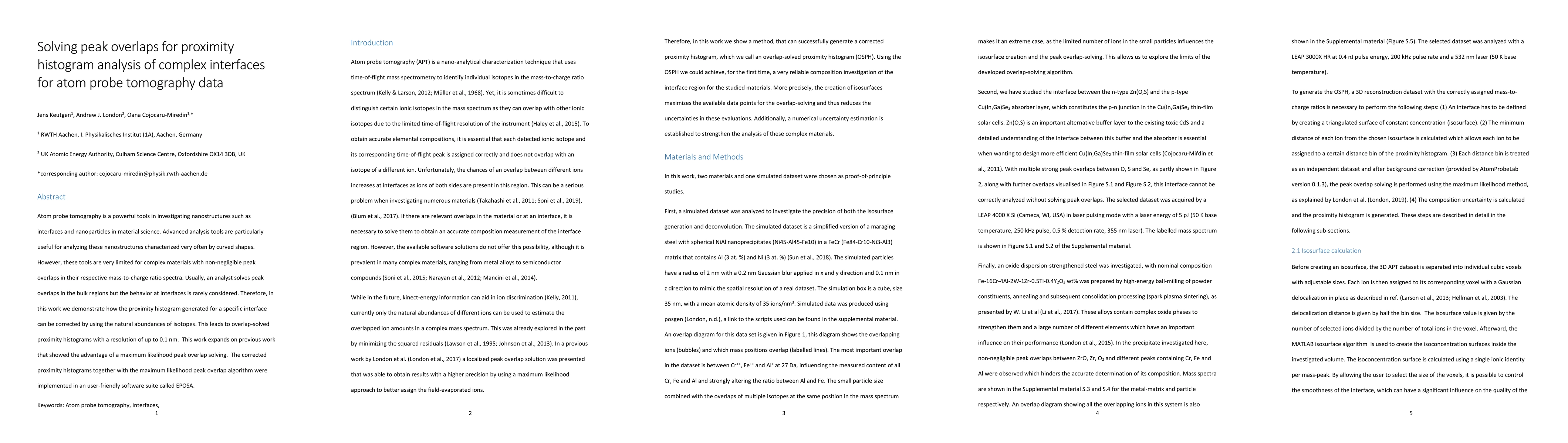 Atom probe tomography is a powerful tools in investigating nanostructures such as interfaces and nanoparticles in material science. Advanced analysis tools are particularly useful for analyzing these nanostructures characterized very often by curved shapes. However, these tools are very limited for complex materials with non-negligible peak overlaps in their respective mass-to-charge ratio spectra. Usually, an analyst solves peak overlaps in the bulk regions but the behavior at interfaces is rarely considered. Therefore, in this work we demonstrate how the proximity histogram generated for a specific interface can be corrected by using the natural abundances of isotopes. This leads to overlap-solved proximity histograms with a resolution of up to 0.1 nm. This work expands on previous work that showed the advantage of a maximum likelihood peak overlap solving. The corrected proximity histograms together with the maximum likelihood peak overlap algorithm were implemented in an user-friendly software suite called EPOSA.