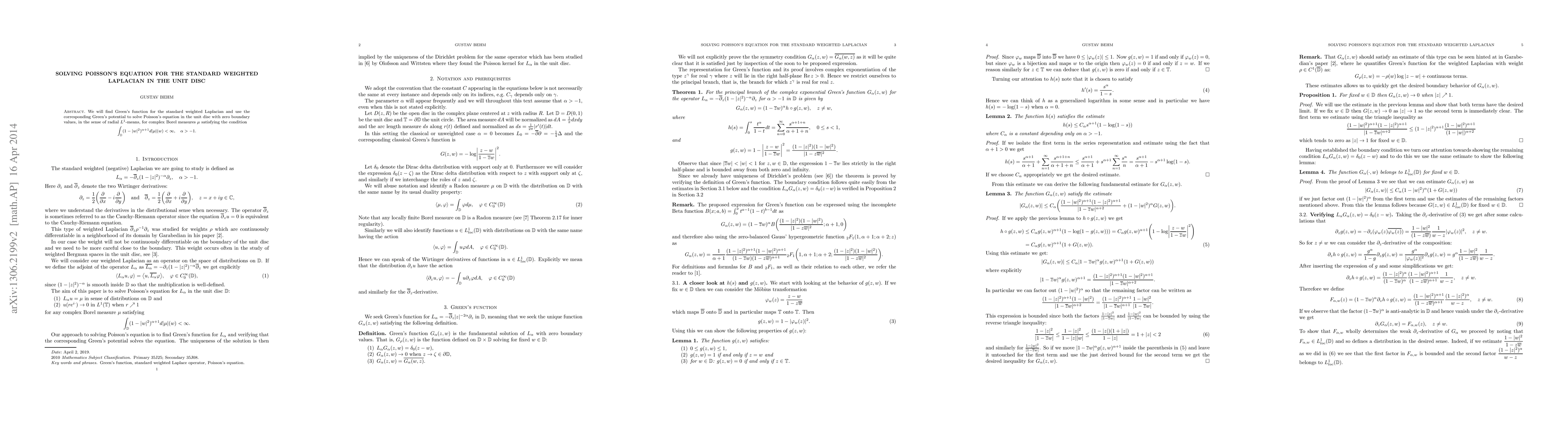 Summary: This paper derives Green's function for the standard weighted Laplacian and employs it to solve Poisson's equation in the unit disc for complex Borel measures under specific integrability conditions, using radial $L^1$-means.