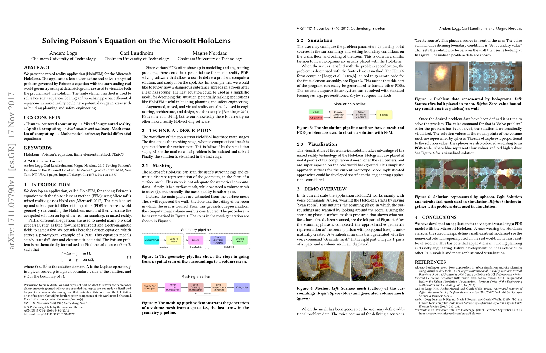 This paper presents HoloFEM, a mixed reality application for the Microsoft HoloLens that solves Poisson's equation using the finite element method, visualizing both the problem and its solution as holograms. Potential applications include building planning and safety engineering.