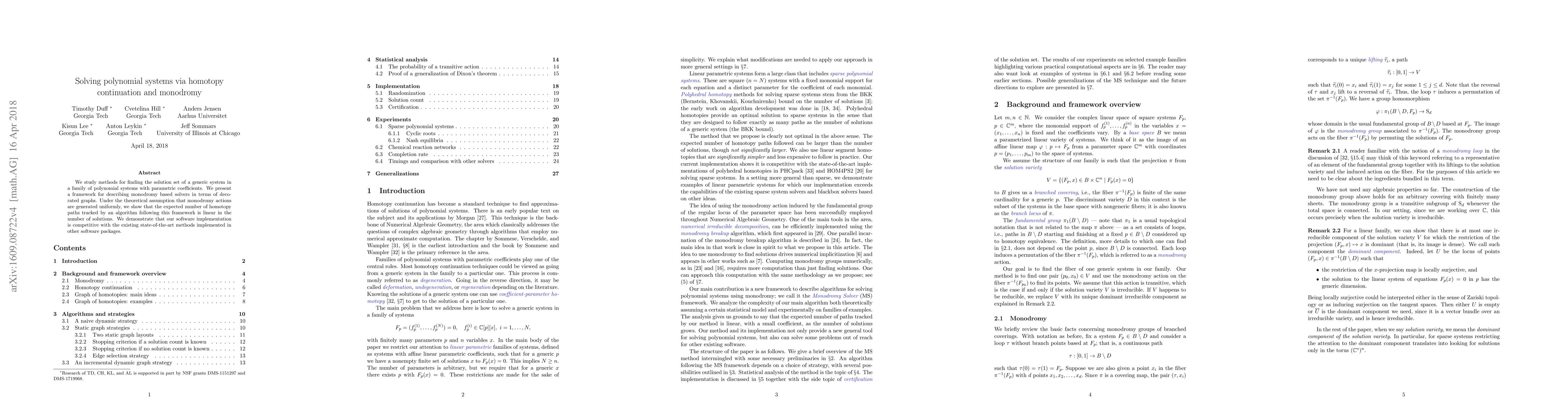 We study methods for finding the solution set of a generic system in a family of polynomial systems with parametric coefficients. We present a framework for describing monodromy based solvers in terms of decorated graphs. Under the theoretical assumption that monodromy actions are generated uniformly, we show that the expected number of homotopy paths tracked by an algorithm following this framework is linear in the number of solutions. We demonstrate that our software implementation is competitive with the existing state-of-the-art methods implemented in other software packages.