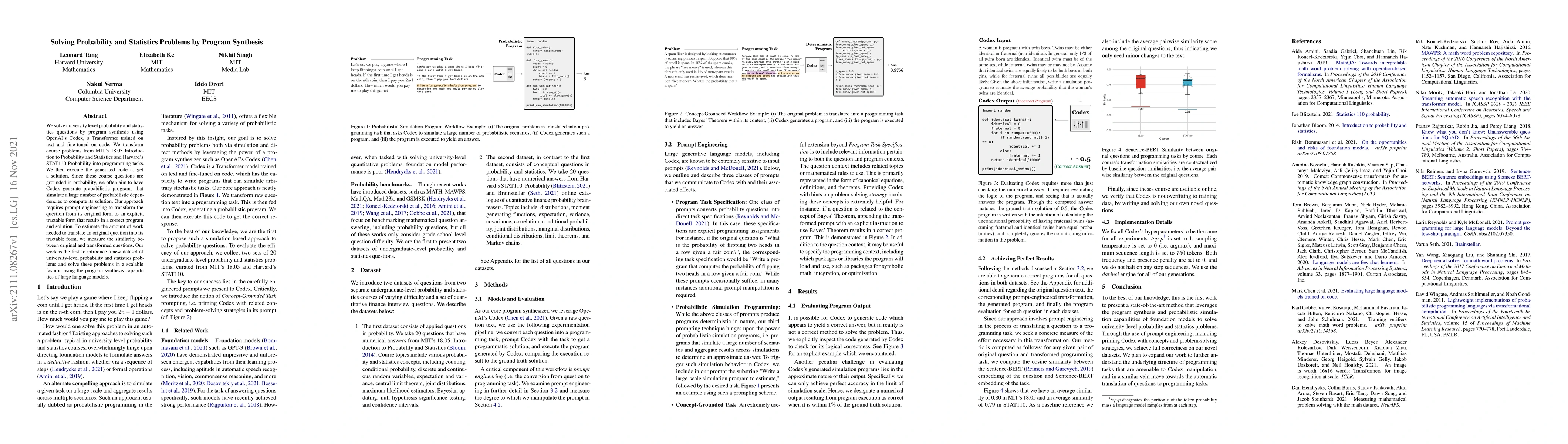 This paper explores using program synthesis with large language models to solve university-level probability and statistics problems, transforming course questions into programming tasks and employing prompt engineering for accurate solutions. The study introduces a new dataset and demonstrates scalable problem-solving capabilities.