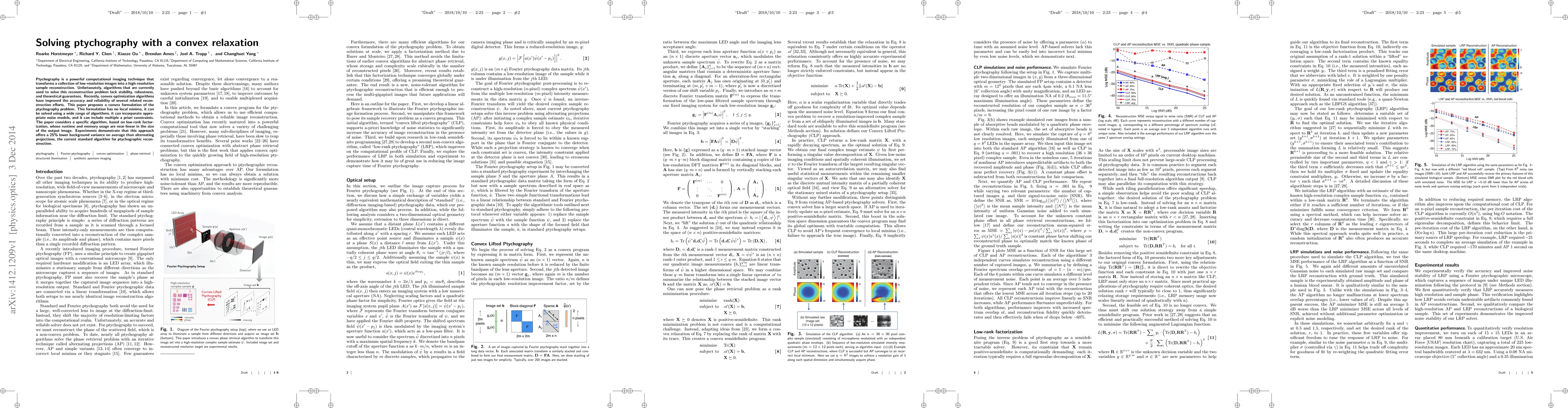 Ptychography is a powerful computational imaging technique that transforms a collection of low-resolution images into a high-resolution sample reconstruction. Unfortunately, algorithms that are currently used to solve this reconstruction problem lack stability, robustness, and theoretical guarantees. Recently, convex optimization algorithms have improved the accuracy and reliability of several related reconstruction efforts. This paper proposes a convex formulation of the ptychography problem. This formulation has no local minima, it can be solved using a wide range of algorithms, it can incorporate appropriate noise models, and it can include multiple a priori constraints. The paper considers a specific algorithm, based on low-rank factorization, whose runtime and memory usage are near-linear in the size of the output image. Experiments demonstrate that this approach offers a 25% lower background variance on average than alternating projections, the current standard algorithm for ptychographic reconstruction.