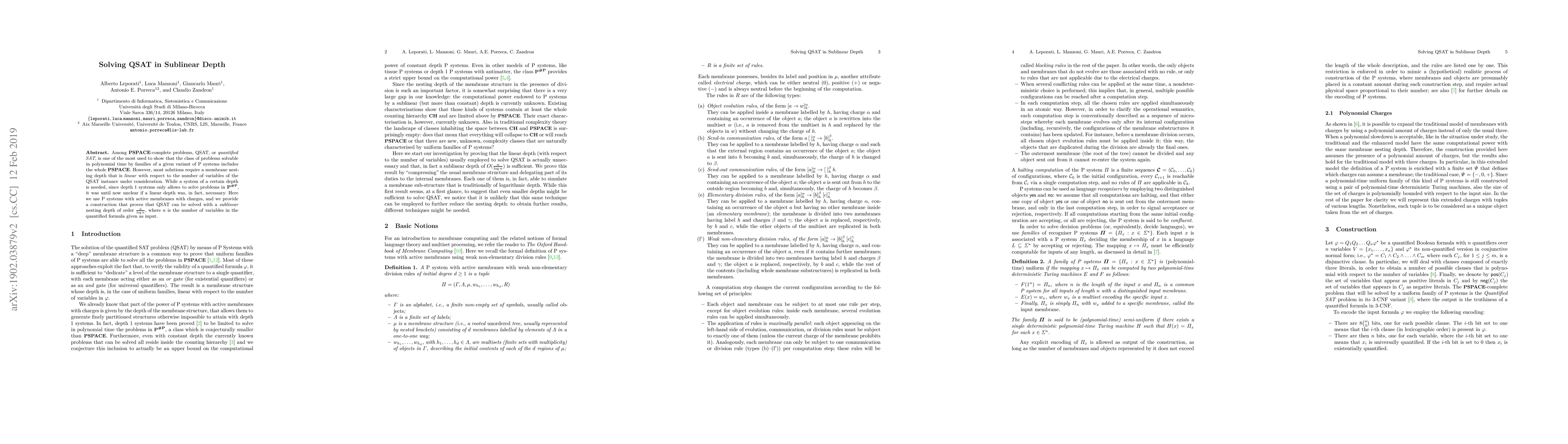 Researchers have found a way to solve QSAT problems with a sublinear depth of order n/log n, improving the known limits for solving these problems in P systems.
