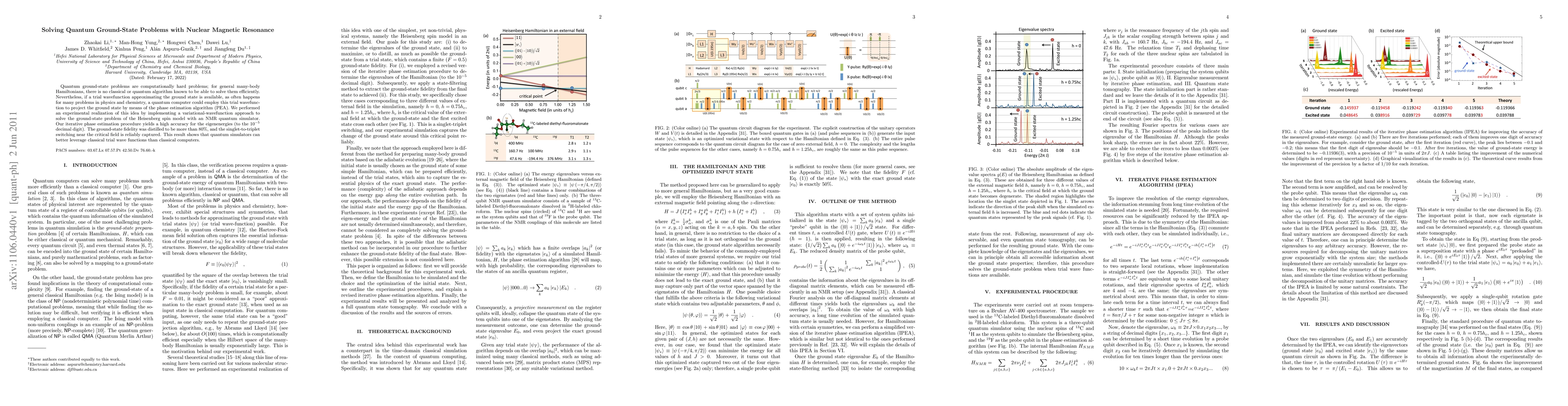 This paper demonstrates a quantum NMR simulator solving the ground-state problem of the Heisenberg spin model using a variational-wavefunction approach and phase estimation, achieving high accuracy and fidelity, showing quantum simulators' superior capability over classical computers.