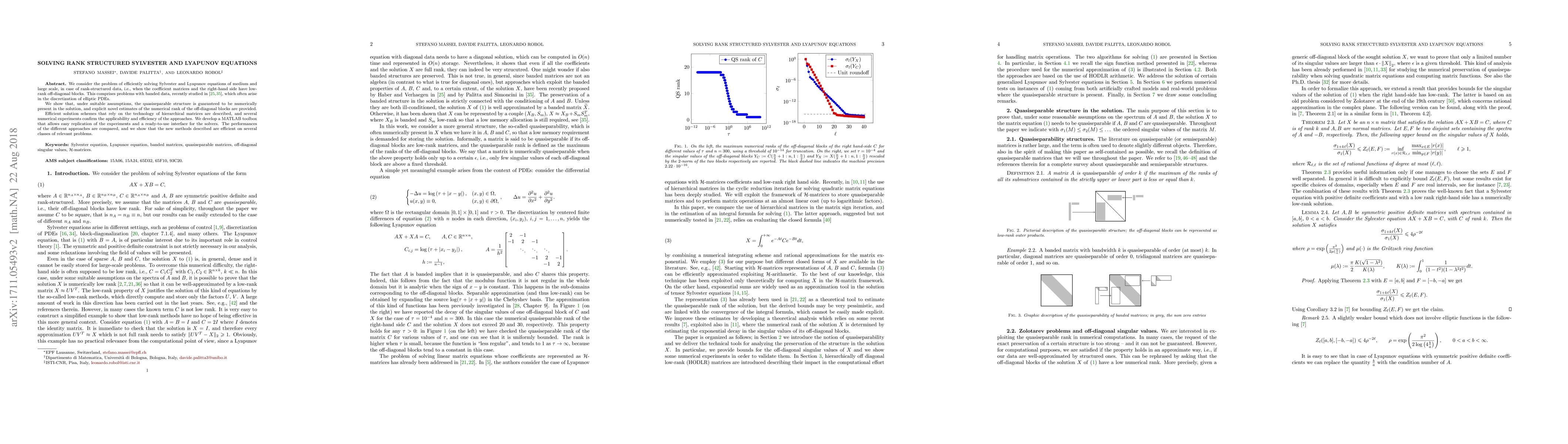 This paper presents efficient solution methods for rank-structured Sylvester and Lyapunov equations, leveraging hierarchical matrix technology to handle medium to large-scale problems with low-rank off-diagonal blocks. It introduces novel numerical rank estimates and a MATLAB toolbox for replication and application.