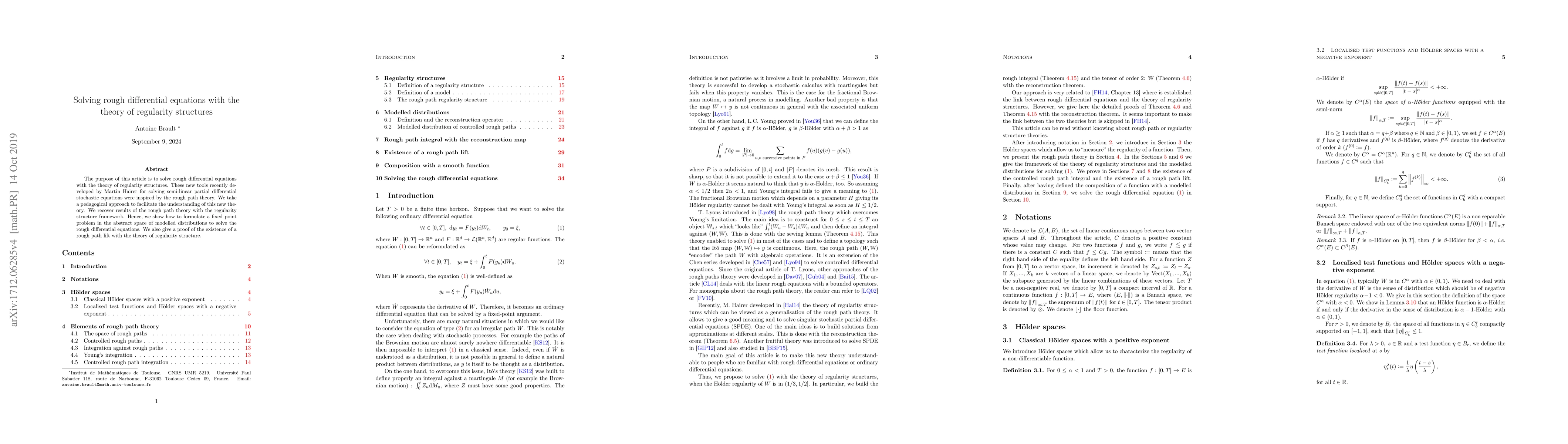 This paper introduces the theory of regularity structures to solve rough differential equations, inspired by rough path theory. It demonstrates how to formulate a fixed point problem in modelled distributions and proves the existence of a rough path lift using this new framework.