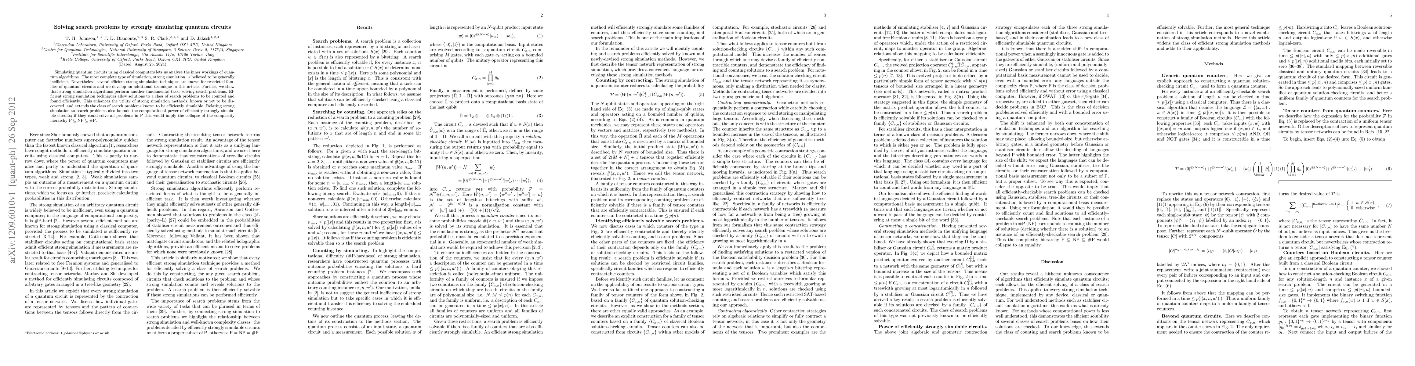 Simulating quantum circuits using classical computers lets us analyse the inner workings of quantum algorithms. The most complete type of simulation, strong simulation, is believed to be generally inefficient. Nevertheless, several efficient strong simulation techniques are known for restricted families of quantum circuits and we develop an additional technique in this article. Further, we show that strong simulation algorithms perform another fundamental task: solving search problems. Efficient strong simulation techniques allow solutions to a class of search problems to be counted and found efficiently. This enhances the utility of strong simulation methods, known or yet to be discovered, and extends the class of search problems known to be efficiently simulable. Relating strong simulation to search problems also bounds the computational power of efficiently strongly simulable circuits; if they could solve all problems in $\mathrm{P}$ this would imply the collapse of the complexity hierarchy $\mathrm{P} \subseteq \mathrm{NP} \subseteq # \mathrm{P}$.