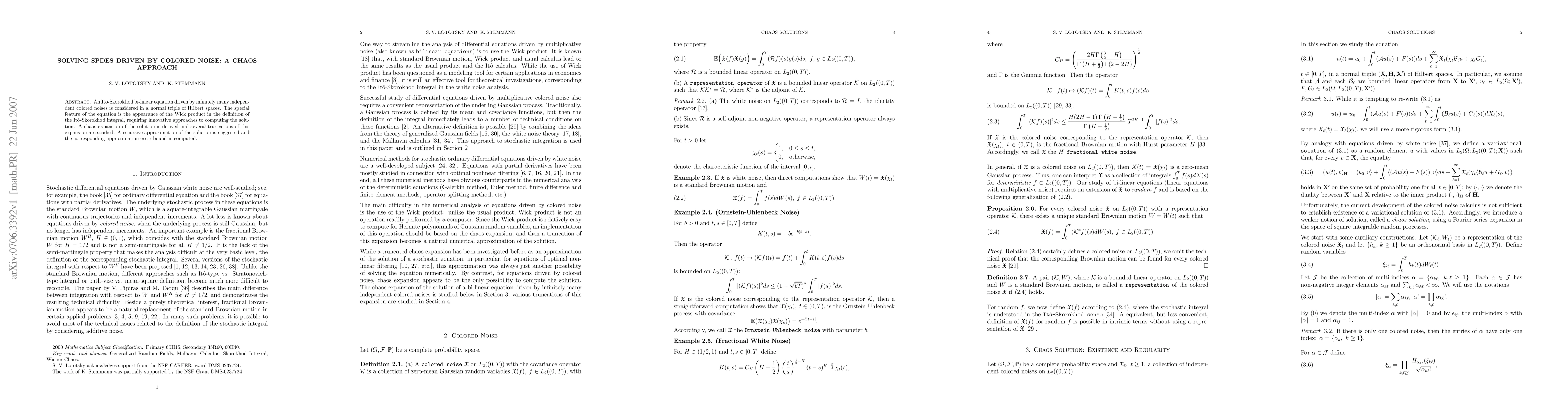 An Ito-Skorokhod bi-linear equation driven by infinitely many independent colored noises is considered in a normal triple of Hilbert spaces. The special feature of the equation is the appearance of the Wick product in the definition of the Ito-Skorokhod integral, requiring innovative approaches to computing the solution. A chaos expansion of the solution is derived and several truncations of this expansion are studied. A recursive approximation of the solution is suggested and the corresponding approximation error bound is computed.