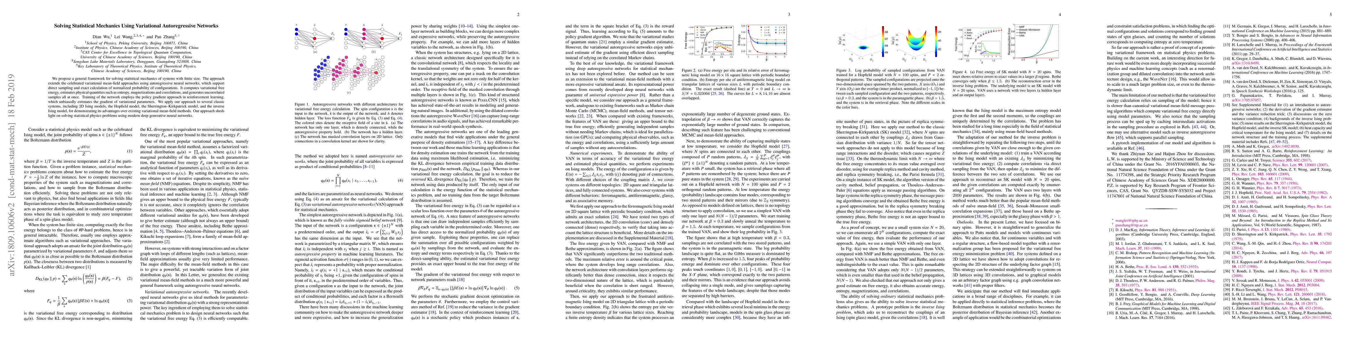 This paper introduces a novel framework using variational autoregressive networks to solve statistical mechanics problems, offering exact computation of normalized probabilities and variational free energy, and demonstrating superior performance over traditional methods on classic systems like the Ising model.